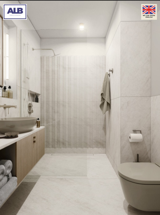 - wysoki standard wykończenia mieszkania w stylu zapewniającym harmonię i odprężenie (biele i beże z dodatkami w odcieniach naturalnego drewna),