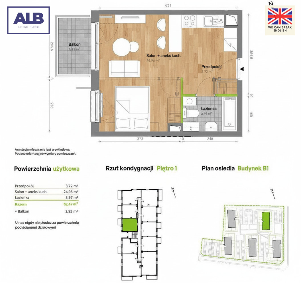 + słoneczny balkon (3,85 m2)