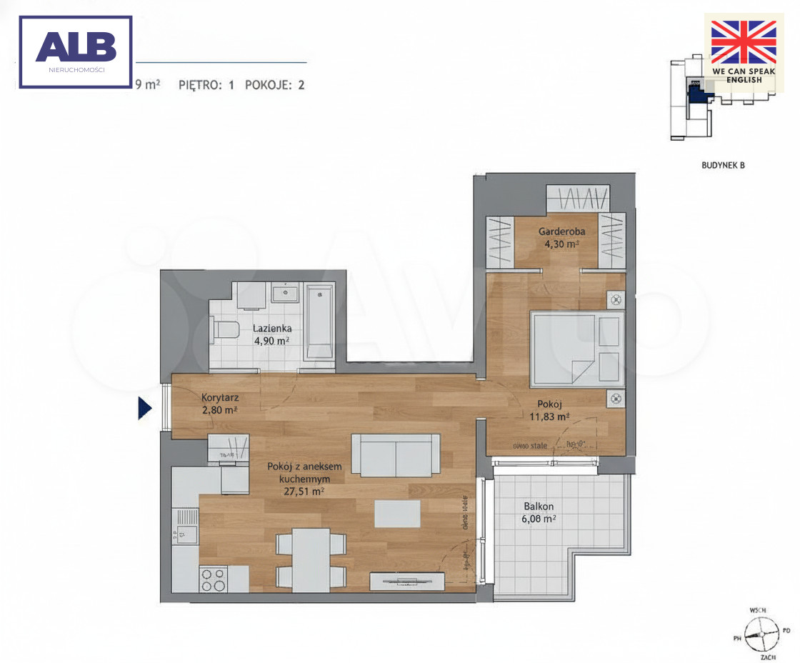 + słoneczny balkon (6,08 m2 i ekspozycja południowo-zachodnia)