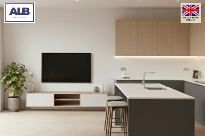 - słoneczny salon z aneksem kuchennym (22,20 m2 i ekspozycja południowo-zachodnia)