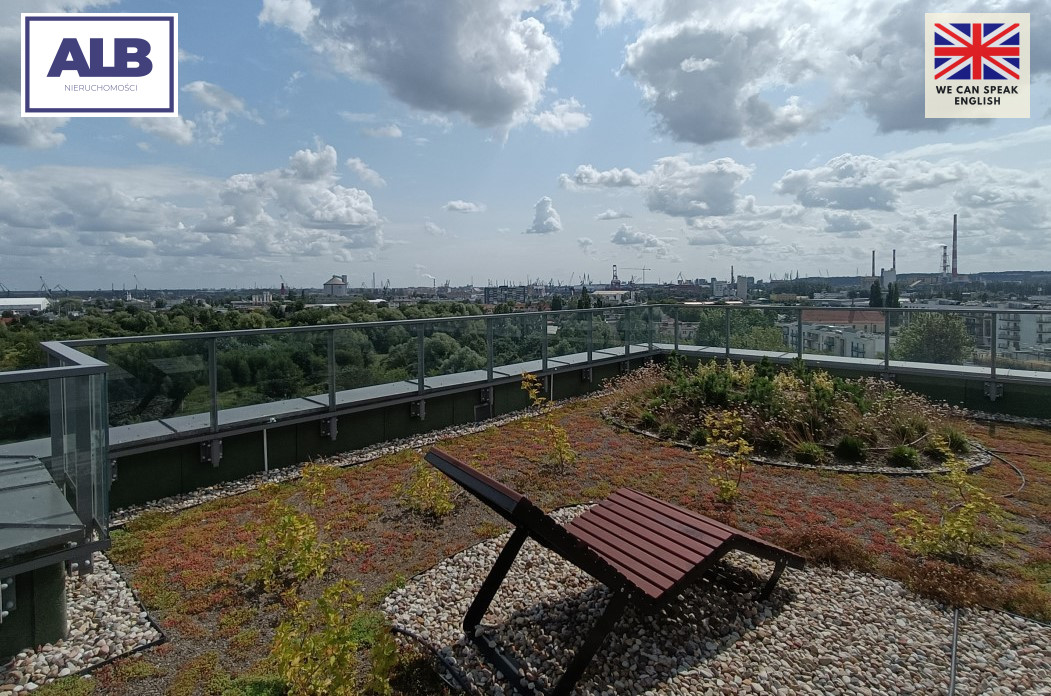 Apartament znajduje się w prestiżowej inwestycji, której dużym atutem jest zielony taras zlokalizowany na dachach każdego z budynków (z 17 piętra można podziwiać widok na morze i panoramę Gdańska).